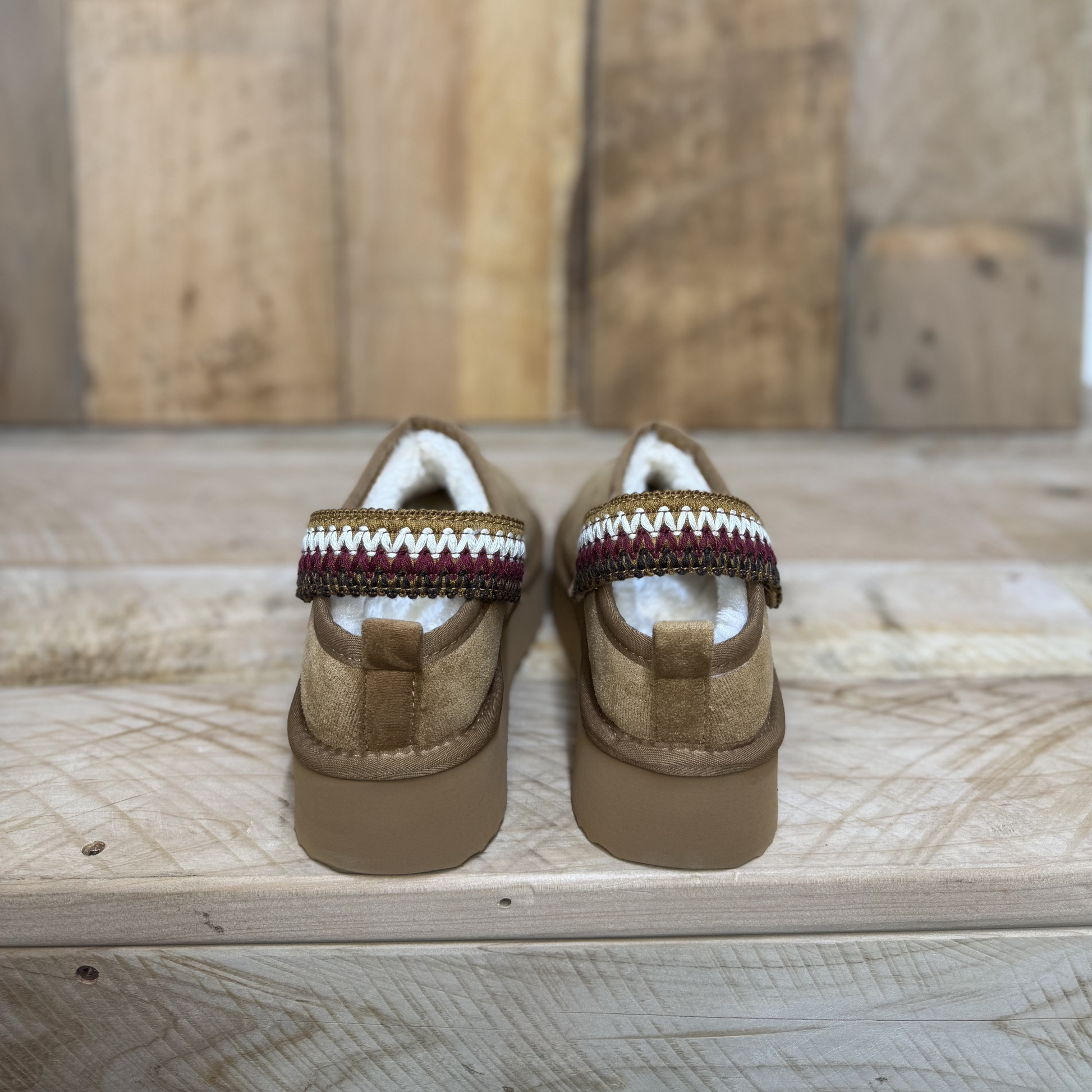 Introducing the Storm Slippers, the perfect combination of style and comfort. These vegan platform lounge mules feature an embroidered strap for a touch of elegance. The synthetic suede upper and manmade outsole ensure durability, while the 1.5 inch heel and 1 inch platform add a subtle lift to your look.